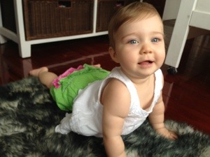 Polly is as gorgeous as ever. She’s becoming quite demanding though and doesn’t like to be left alone. She’s also getting a bit of Mummy separation anxiety. Still no teeth, although she did pull herself up on the lounge yesterday all on her own. So clever! She’s a joy and her and Rosie get on really well most of the time. Polly can be quite rough and Rosie just lets her. When Polly grabs a handful of your hair, she doesn’t let go until there’s a clump in her hand (not that I have that problem but watch out for men with chest hair!) Polly has started yelling a lot lately. I know she’s trying to communicate and be heard but all I can picture is Rosie and Polly trying to outdo each other and giving me a massive headache in the process. I can also picture them laying in bed reading together so it won’t be all noise.