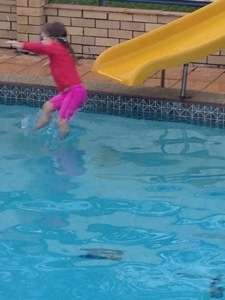 The last couple of days were extremely draining and this morning I felt the worst I’ve felt emotionally in some time. It’s all catching up with me I’m afraid. But this to shall pass. I’m just having one of those weeks where it’s all compounding on top of me. I know it will lift up and dissipate into the atmosphere soon enough. I’ve just got to ride this wave until I reach the beach and can enjoy the sunshine again. Mum went home last week, the house is definitely a lot dirtier and untidy without her there 😉 It’s nice to have some family time but also hard to tend to all the girls needs on my own during the day when feeling so exhausted. It means that my own needs (eating when hungry, resting, quiet time etc) are pushed aside to make sure the girls are having their needs (and Rosie’s wants – I want this, I want that) fulfilled. Derek was away Tuesday night so it was the three of us Tuesday, Tuesday night and Wednesday. On the upside our new car (Toyota Camry in Reef Blue) was delivered on Tuesday afternoon. The girls and I had just been for a swim to cool down. Polly wouldn’t sleep and Rosie and I were hot and bothered after having power tussels all day long. I always win so I really wish she’d save us both the tears, tantrums and trouble and just do as I ask straight up. Anyway, after the swim the girls were going to have an early bath. The car turned up right at that time so I was signing all the paperwork for the car with wet towels, togs and a dirty swimming nappy on the floor plus two nude little girls needing attention. Rosie put herself in the bath and I juggled Polly while we did the handover for the car. I wonder in amazement how I get through some days. Wednesday was a much better day.